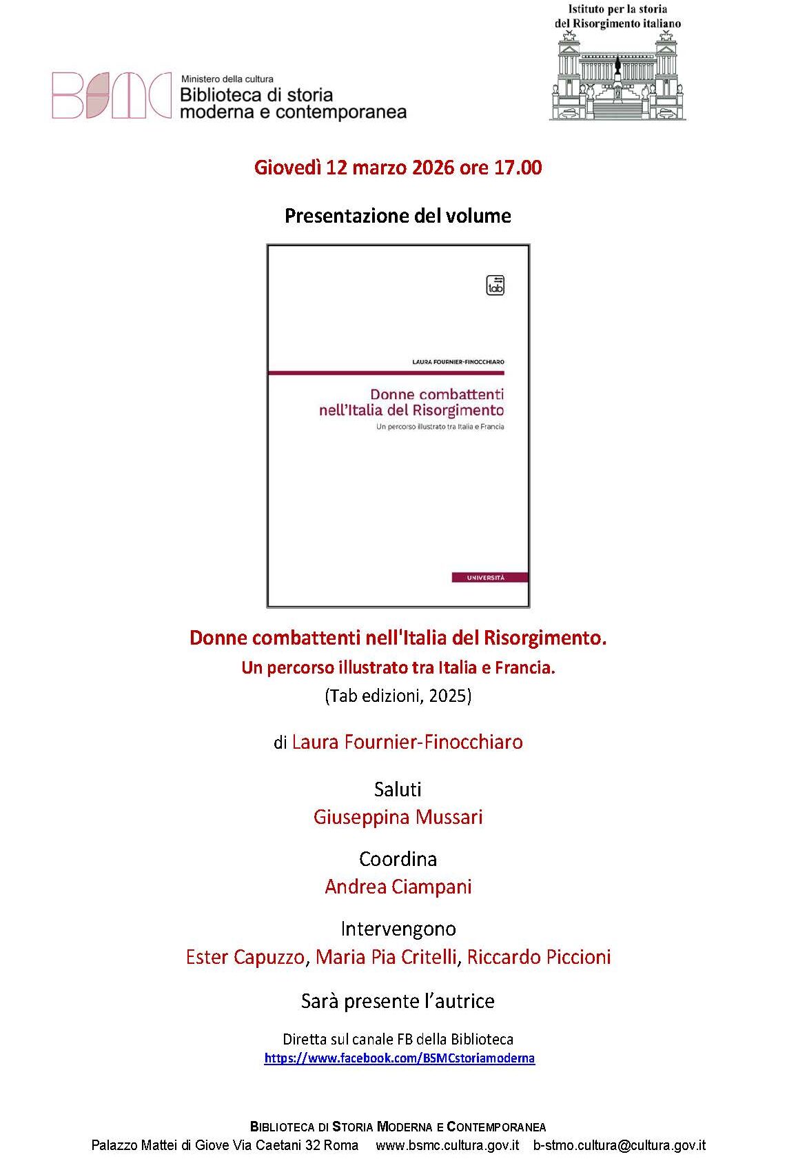 Giovedì 31 ottobre, alle ore 17.00, presso la sede e sul canale Facebook della Biblioteca di storia moderna e contemporanea, presentazione del volume